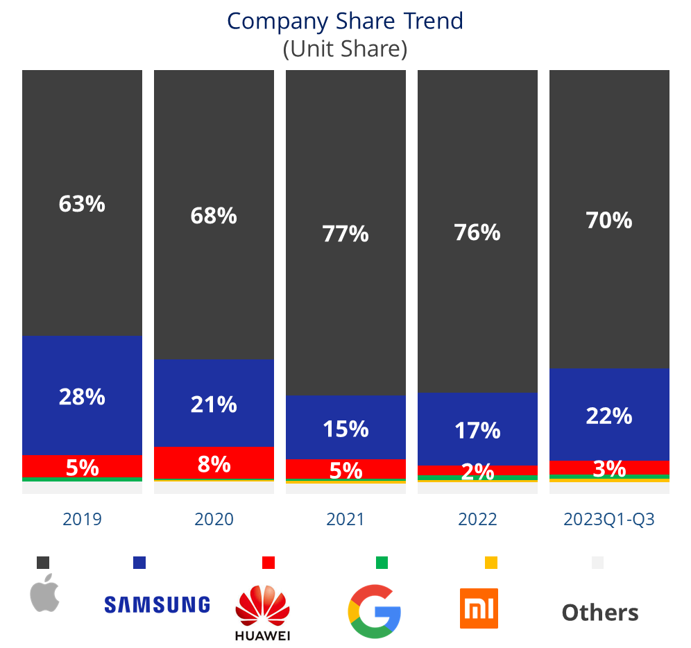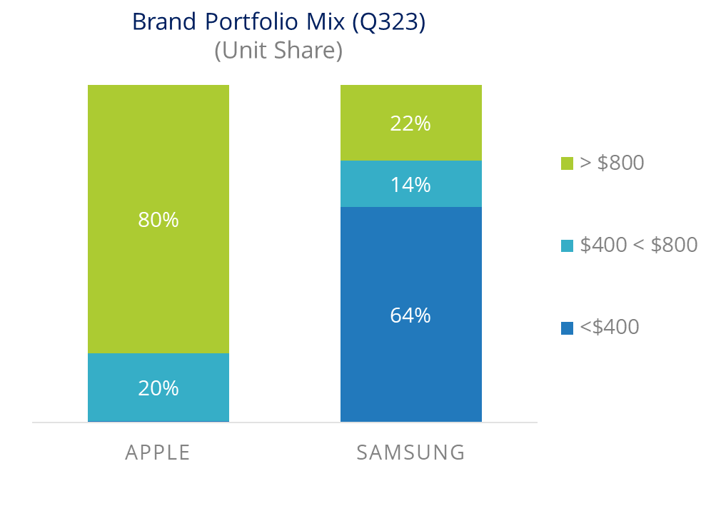 The consumer willingness to pay more has pushed Apple even further ahead of its competitors in value terms, and the most expensive Pro models in the new ranges have become the most popular models in its flagship lineup.