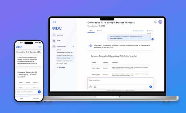 IDC’s new AI intelligence platform will make our proprietary data, research, and analyst insight conversational, contextual, and workflow-ready so you can move from question to decision faster and with more confidence than ever before.