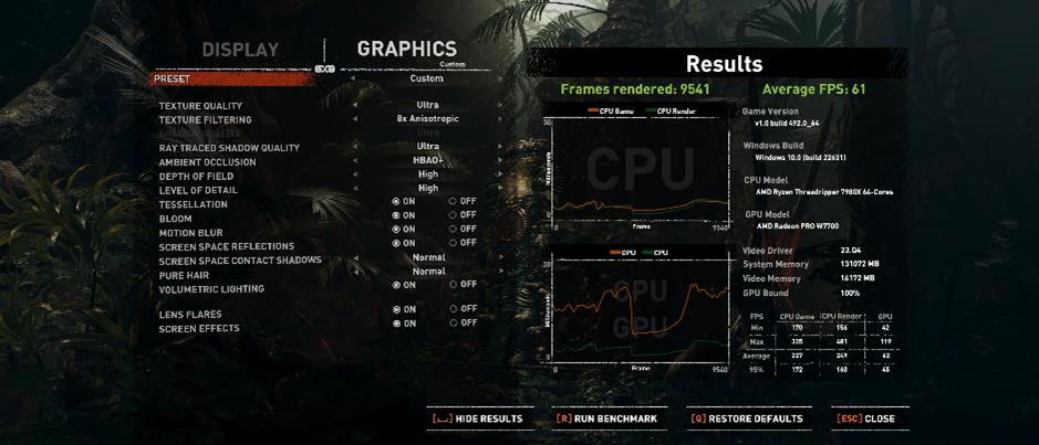 Shadow of the Tomb Raider ran at an average 61 frames per second (fps) at 1440p, with a minimum of 42fps. The highest graphical settings, as well as AMD’s FidelityFX CAS package, were enabled. Surprisingly, the use of XeSS for upscaling while running the game test boosted performance by 10% at the same settings, achieving a minimum of 50fps and an average of 66fps. This might be a demonstration of the RDNA3 architecture’s AI acceleration capabilities and the Radeon Pro W7700’s AI accelerators.
