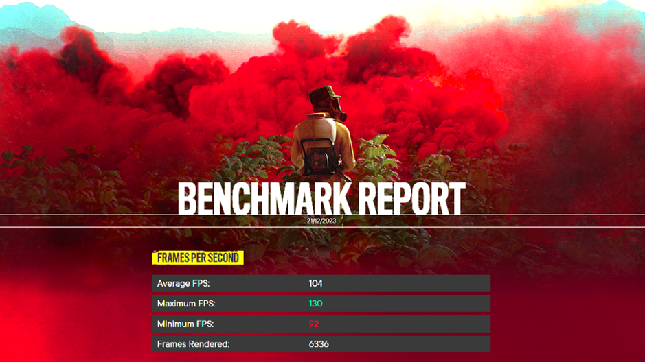 Far Cry 6 ran at an average 104fps at 1440p, registering a minimum of 92fps. All DirectX Raytracing (DXR) and FidelityFX Super Resolution (FSR) features were enabled during testing.