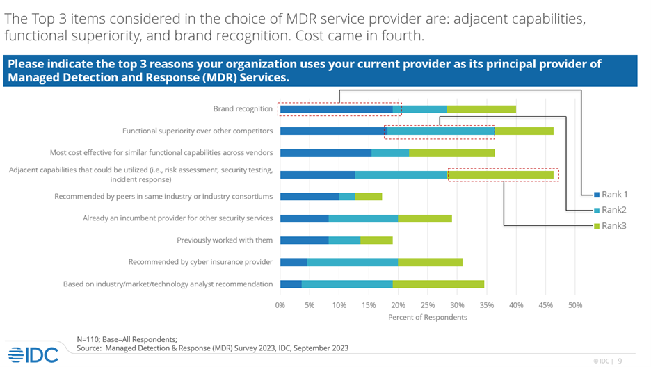 In our recent Managed Detection and Response (MDR) survey, we found that organizations are not only systematically benchmarking direct pricing but also comparing feature sets and costs across vendors (see Figure 1).