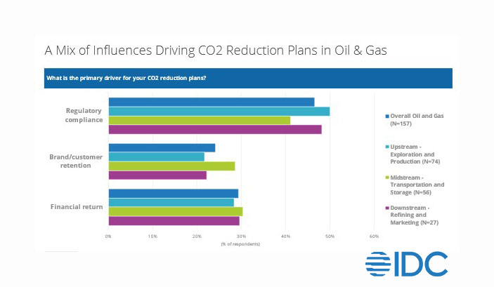 Originally driven by the United Nations, the energy transition and ESG movement has had substantial momentum propelling oil and gas leaders to engage technology partners to meet accepted global standards. In addition, the SEC’s March 2022 directive on climate change disclosures now mandates a quick transition to investor grade reporting. The O&G industry is among the most scrutinized on the planet. As regulators grapple with the competing interests in energy security and climate change, under investment in capital projects in the last many years, ESG is at the front and center of the discussion. Management teams for corporations are getting the message and steering toward ESG-driven values and metrics that are viewed as “sustainable” in the long term rather than strictly focusing on short-term profits. In the oil and gas energy transition survey, industry leaders cited regulations (or impending regulations) as the key driver to CO2 reductions, while financial return and brand considerations were also factors (see figure 1 below).