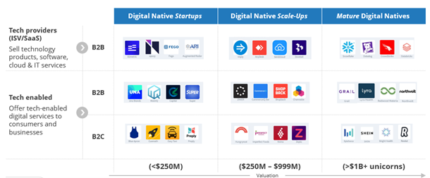 Although there is a fair amount of overlap between these categories, many initiatives are still disconnected and siloed. Vendors should take a more holistic approach to engaging digital native businesses to build longer relationships, partnerships, and commercial relationships. Once a vendor is clear on the type of engagement, vendors need to assess what type of DNBs fit that purpose. The following segmentation looks at the DNB business model: