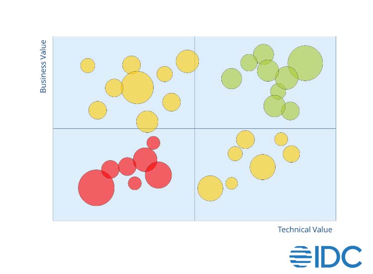 - Applications in the upper right quadrant have a high business value and a high technical value. These applications are fit for purpose and deserve the budget and attention to keep them there.