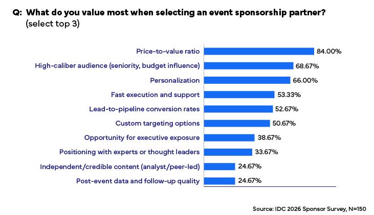 According to IDC’s 2026 Sponsor Survey of 150 senior marketers across the US, UK, Germany, and Singapore:
