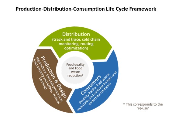 Circularity is intrinsically embedded in the production-distribution-consumption life cycle framework while technology, and in some cases ethic, can be applied across the different processes of the food supply chain: from production, through distribution, to the final consumer with the aim to control and, ultimately, eliminate food waste and losses.