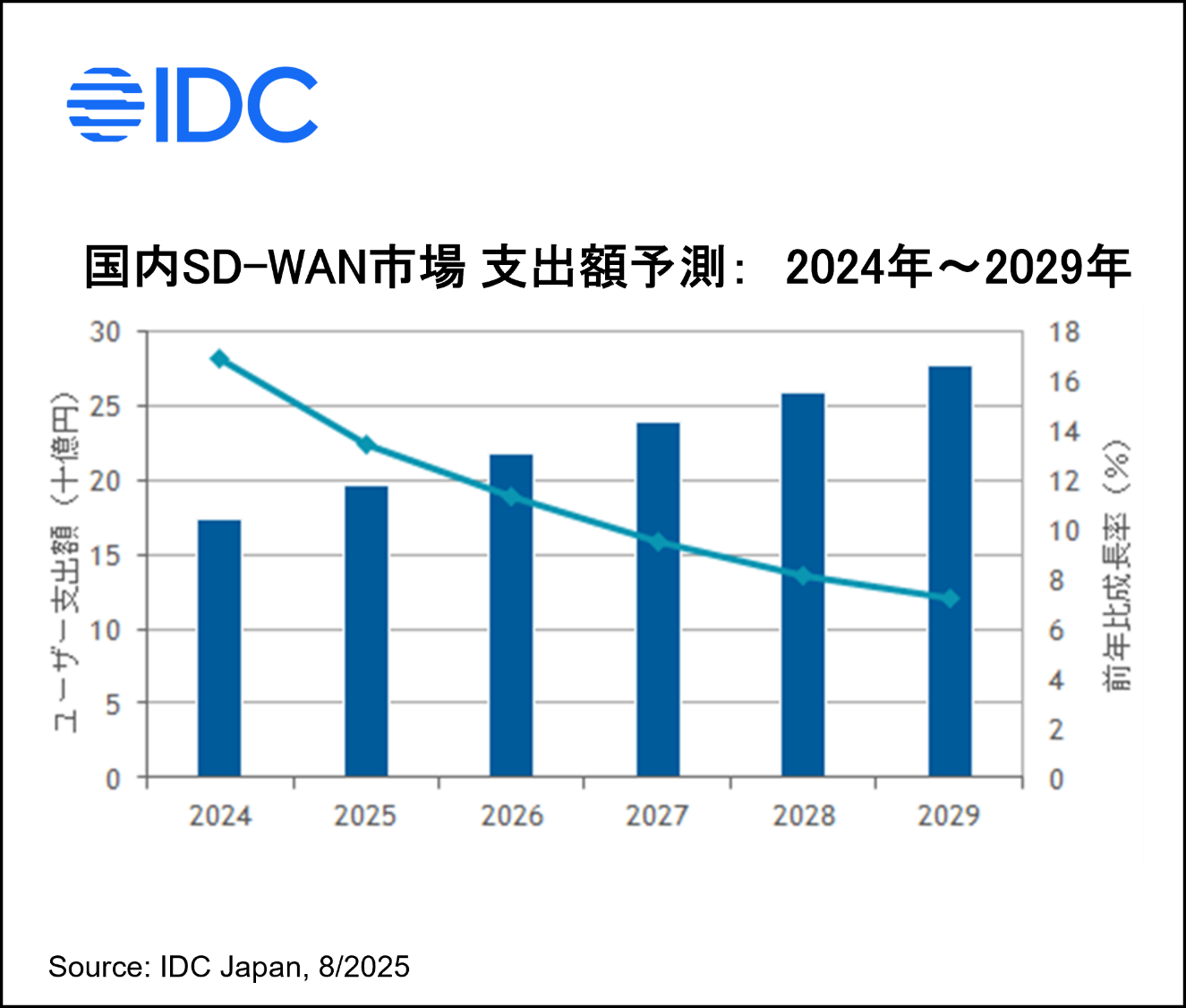 Japan, 2025年8月22日- IT専門調査会社 IDC Japan 株式会社(所在地:東京都渋谷区渋谷二丁目24番12号、代表取締役社長:村橋 俊介、Tel代表:03-6897-3812)は、国内SD-WAN市場に関する最新の調査結果を発表しました。