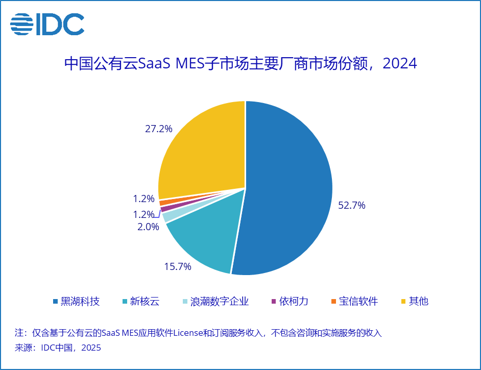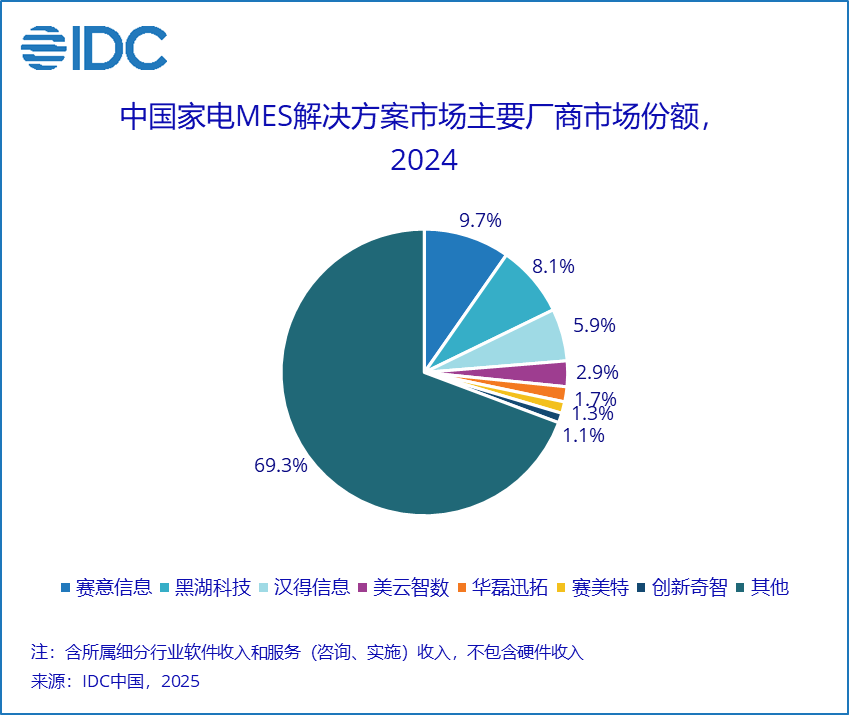国际数据公司(IDC)于近日发布了《 IDC 中国 MES 市场份额, 2024 :格局重塑》( Doc #CHC 52914525 , 2025 年 11 月) 。报告针对2024年中国制造业MES市场的规模、增长速度、主要玩家、市场与技术的发展趋势等内容进行了详细研究。