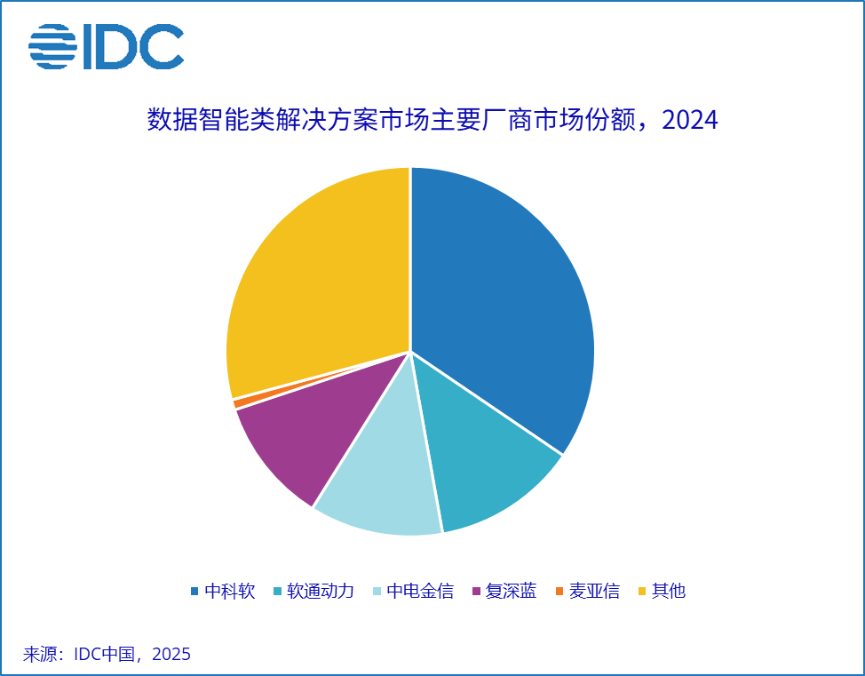 • 数据智能类解决方案需求上升。尤其是在数据治理方面,一方面,保险行业数据来源多样,存在数据离散性高、结构不一致、准确性不足、标准不一致等问题,以元数据、主数据,数据生命周期管理相关的数据治理解决方案需求持续存在。另一方面,大模型在保险行业的深入应用对非结构化数据治理需求加大。非结构化数据在保险业务价值链中占比迅速提升,成为支撑智能核保、理赔自动化、智能客服、精准营销、风险防控的关键要素。该解决方案市场的主要厂商市场格局如下图所示。