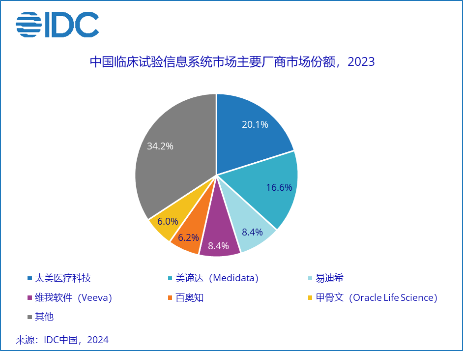2023年临床试验信息系统主要厂商市场份额如下图所示: