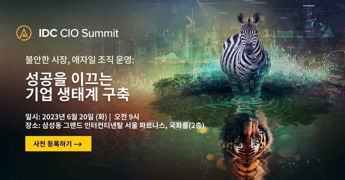 2023년 6월 7일, 서울 – IT 시장분석 및 컨설팅 기관인 인터내셔날데이터코퍼레이션코리아 (International Data Corporation Korea Ltd., 이하 한국IDC, 대표 한은선, https://qa.idc.com/kr)는 오는 6월 20일 ’IDC CIO 서밋 2023’을 삼성동 그랜드 인터컨티넨탈 서울 파르나스 호텔에서 개최한다고 금일 밝혔다. 올해로 18년을 맞이하는 본 행사는 코로나로 인해 최근 3년간 온라인으로 진행되다가 올해 오프라인으로 재개됐다. 한국IDC는 ‘불안한 시장, 애자일 조직운영: 성공을 이끄는 기업 생태계 구축’을 주제로 대내외 경제의 불확실성이 확대되는 최근의 상황에서 기업이 비즈니스 성장을 도모하기 위한 다양한 기술 솔루션과 인사이트를 공유할 예정이다.