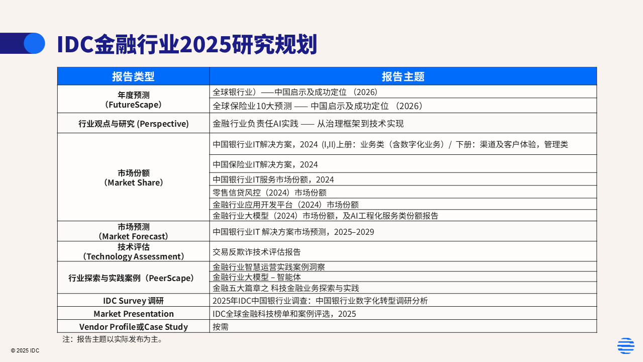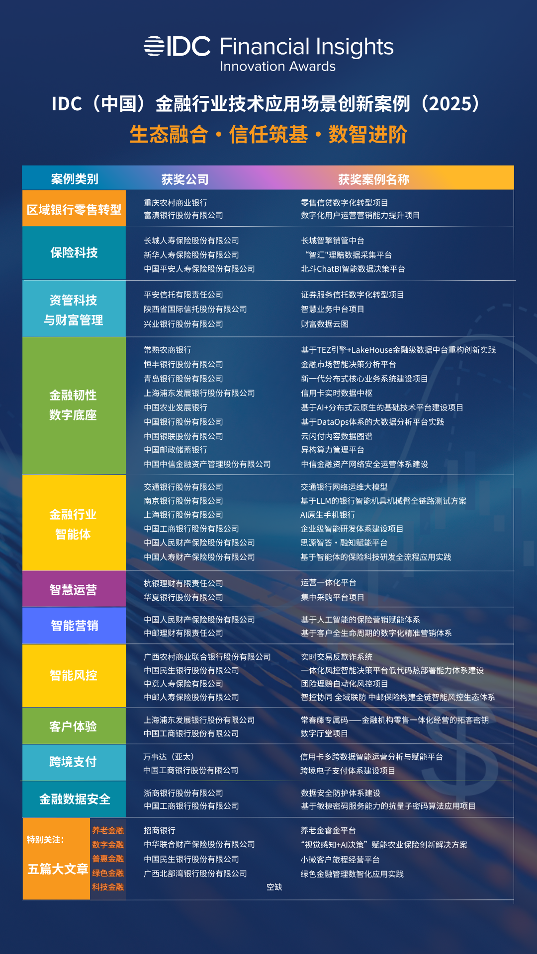 以上所有奖项将在2025年8月7日北京举办的2025 IDC中国数字金融论坛上进行颁奖,敬请期待。