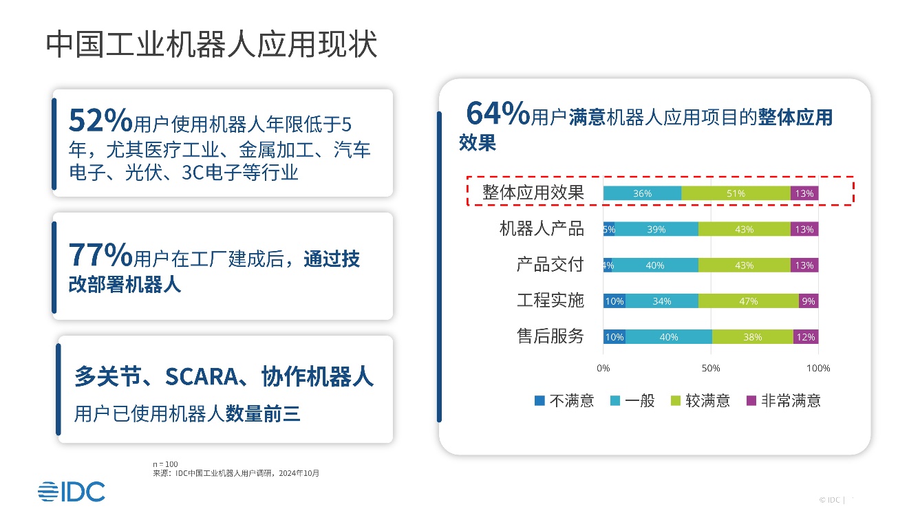 目前,机器人应用加速,用户整体满意度64%