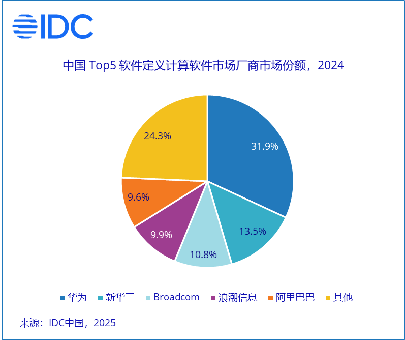 - 从2022年到2024年,软件定义计算软件市场的同比增长率不断在降低,这和中国经济仍在恢复和调整,地缘政治和贸易战的影响,行业客户采购资金的缩减和方向的变化等原因都有着密切的关系。对于未来市场的发展,IDC报以谨慎乐观的态度,认为市场会慢慢恢复到两位数的增长率。