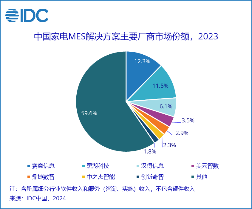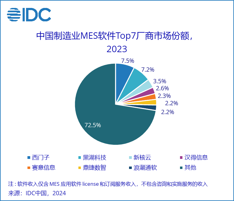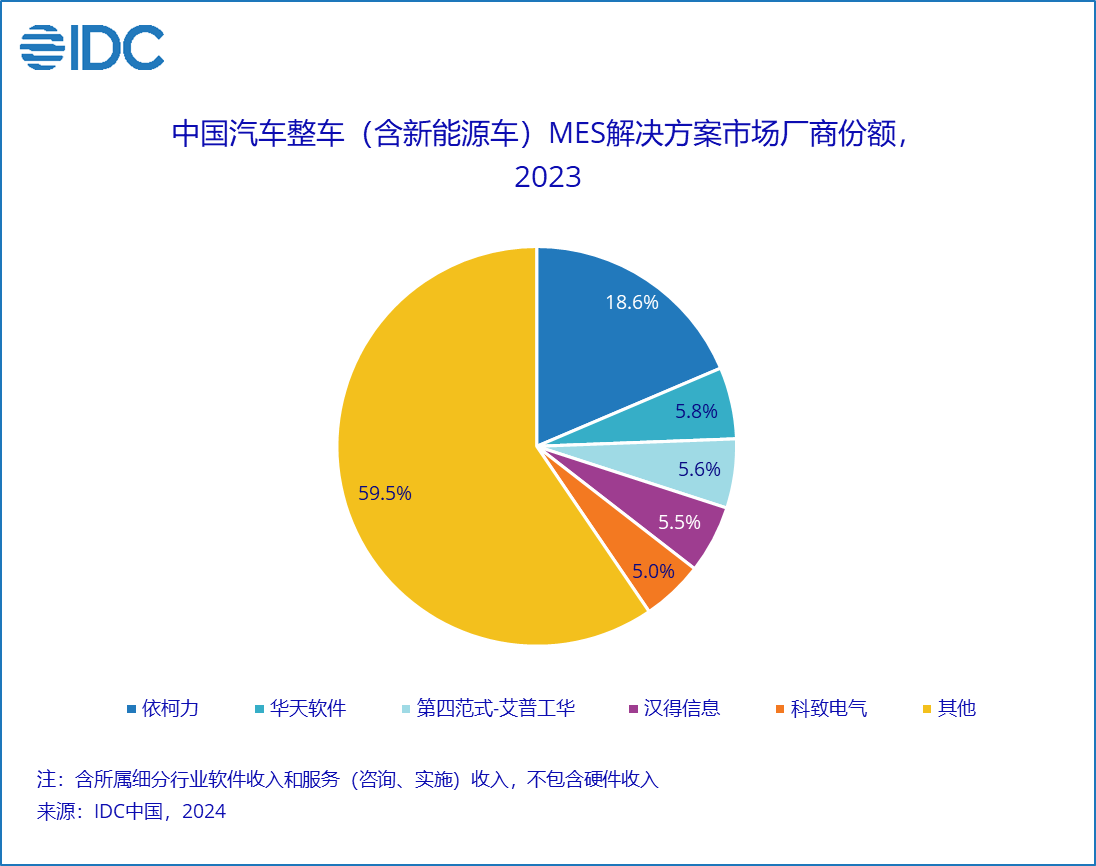国际数据公司(IDC)于11月对外发布了《IDC中国制造业MES市场分析及厂商份额,2023:行业聚焦,AI赋能》(Doc#CHC52294125,2024年11月)。报告针对2023年中国制造业MES市场的规模、增长速度、主要玩家、市场与技术的发展趋势等内容进行了详细研究。