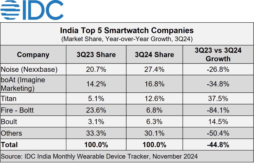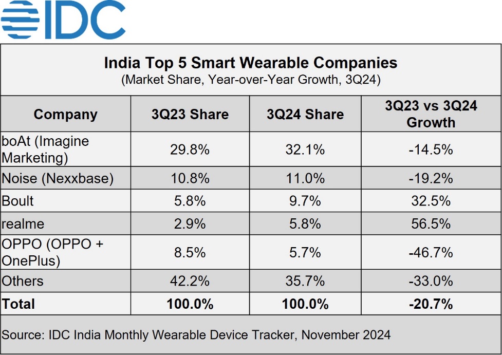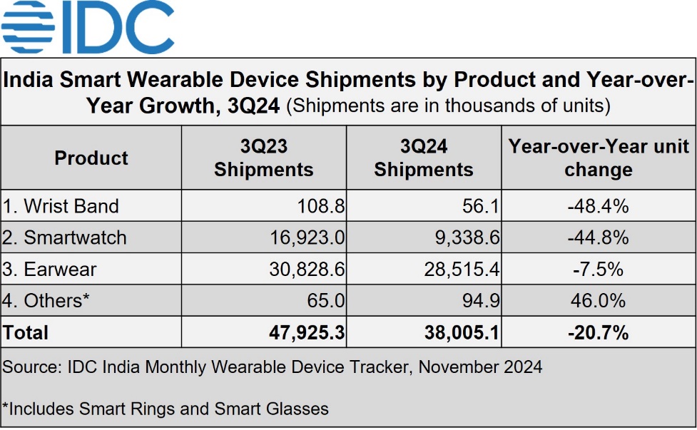IDC: India’s Wearable Device Market Dropped 20.7% in 3Q24, Marking the Second Consecutive Quarter of Decline