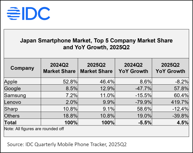 今回の発表はIDCが発行したWorldwide Quarterly Mobile Phone Tracker 2025Q2にその詳細が報告されています。